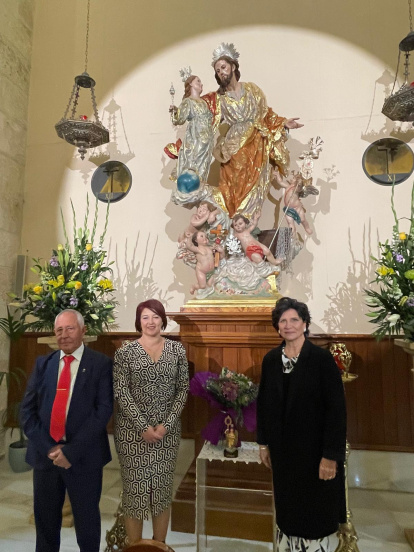 Toñi Urrutia, alcaldesa de Canjáyar, junto a Carmen Navarro ante la imagen de San José.