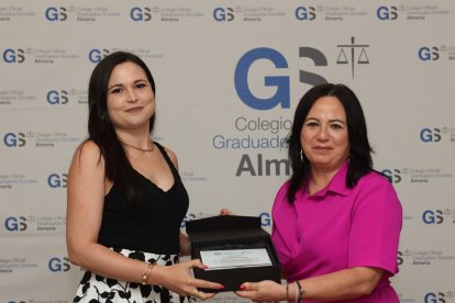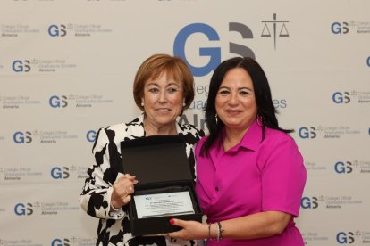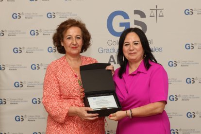 En reconocimiento a esta colaboración institucional, la presidenta del Colegio, María del Mar Ayala, hizo entrega de una placa conmemorativa a la Excma. Diputación Provincial de Almería, que fue recogida por la diputada delegada especial de Iniciativas Europeas y Emprendimiento, Esther Álvarez Cappa.
