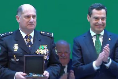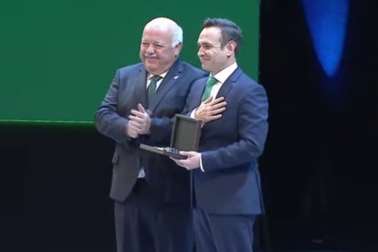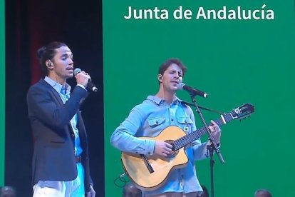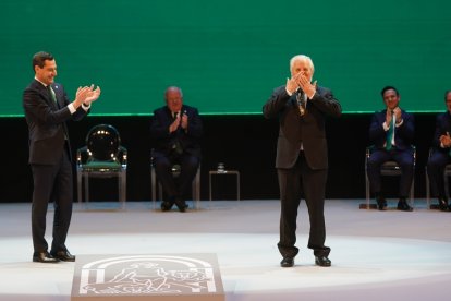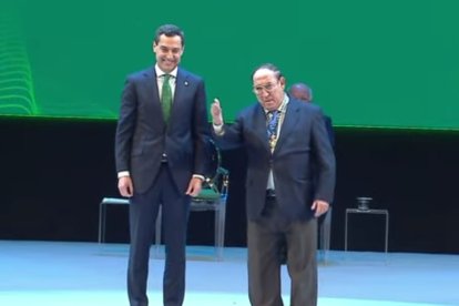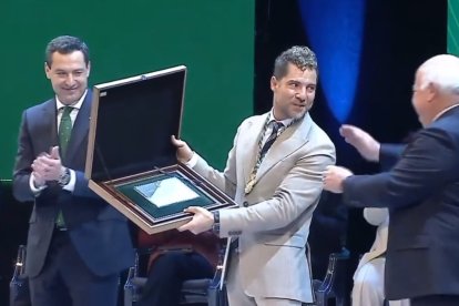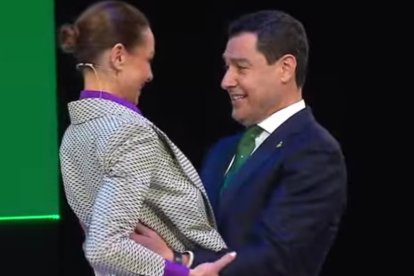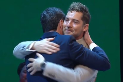David Bisbal, emocionado, abraza a Juanma Moreno.