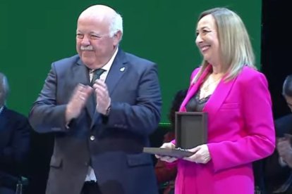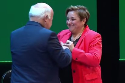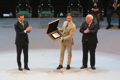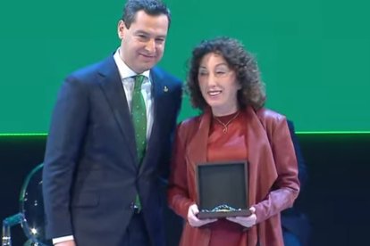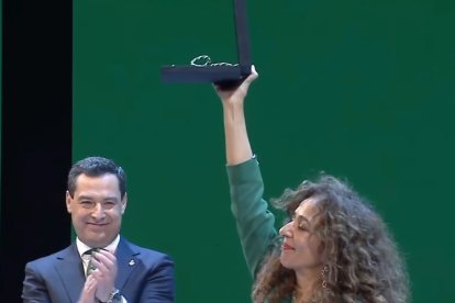 María Ángeles Cayuela, almeriense, besa la Medalla de Andalucía.