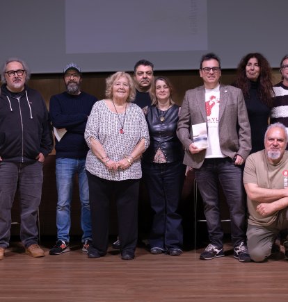 El autor se rodea de una docena de amigos para presentar en la Biblioteca Villaespesa su libro ‘Un idioma siempre al borde de la extinción’