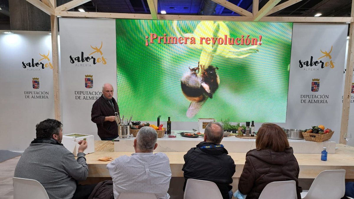 El stand de ‘Sabores Almería’ ha estado ambientado con material de control biológico (plantas reservorio, colmenas o placas petri). El mensaje se ha reforzado con la proyección de un vídeo descriptivo de la fauna y flora beneficiosos para el cultivo de productos hortofrutícolas. La puesta en escena de esta temática ha sido posible gracias a la aportación de material, fotos y vídeos de las empresas de control biológico colaboradoras de la campaña ‘I Love Bichos. Cultivos Naturalmente Protegidos’.
