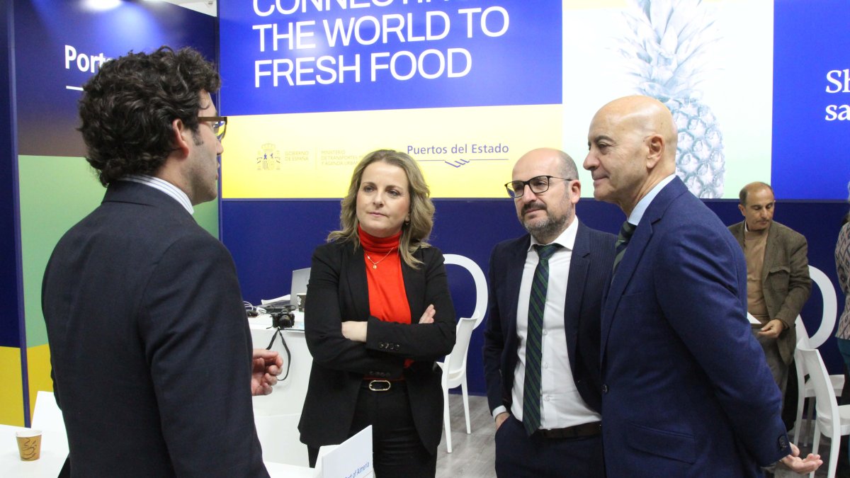 Una de estas reuniones ha tenido lugar en el stand de Puertos de España con los responsables de la Fundación Bahía Almeriport, con su presidente, Diego Martínez Cano, y gerente, Fabio Laborda. Ambas entidades se han comprometido a estudiar posibles acuerdos que potencien la exportación de frutas y hortalizas en barco y que, para fomentar el turismo, la agroalimentación se convierta en un aliciente para los visitantes que llegan a Almería en cruceros.