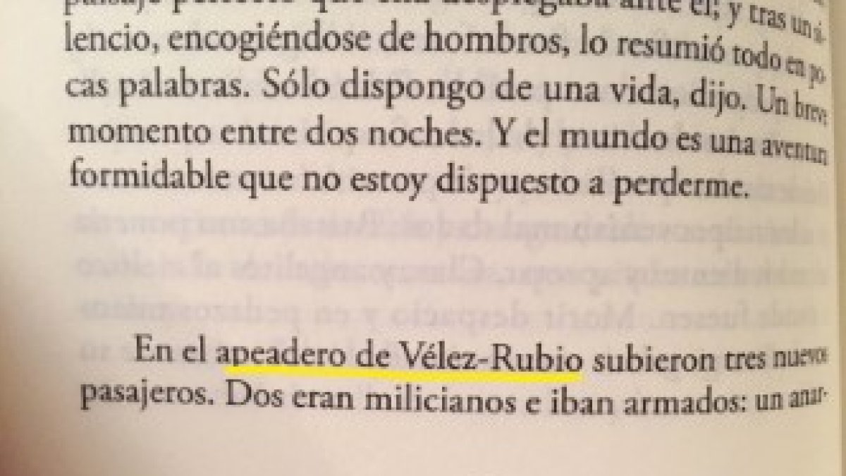 Pérez Reverte, mete la pata ferroviaria a su paso por Almería en su última novela Falcó. Una trama ficticia sobre la liberación de Primo de Rivera a través de un oscuro héroe, enemigo de rojos y azules. La historia es que, podía haber puesto alguna de estas estaciones y apeaderos: Serón, Tíjola, Purchena, Fines-Olula, Cantoria, Albox-Almanzora, Arboleas, Zurgena, Huércal Overa, Almajalejo y Las Norias...Vélez Rubio nunca tuvo ferrocarril.