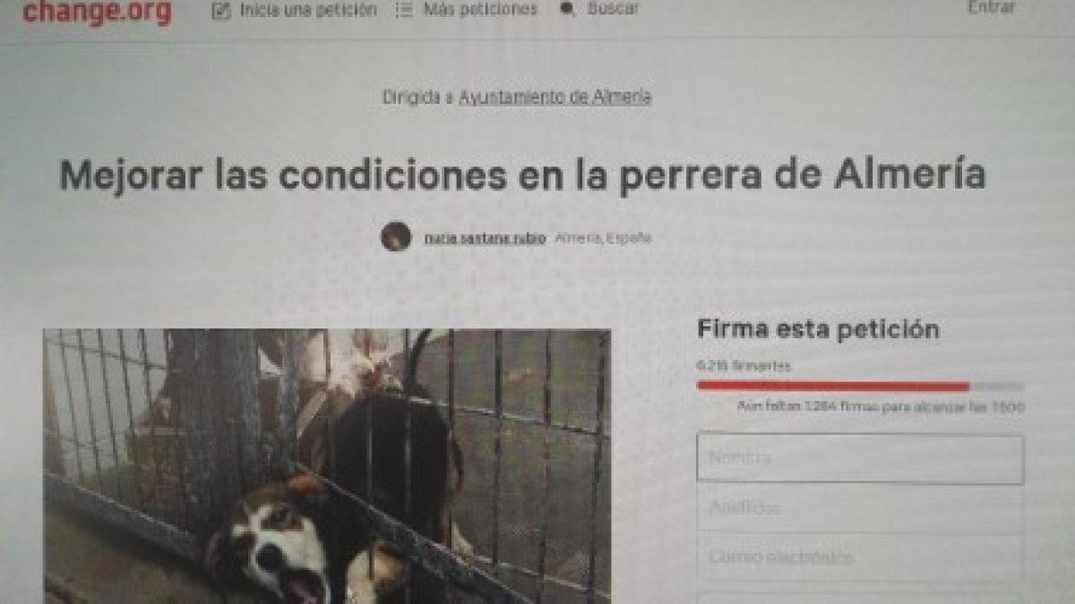 Change.org es la mayor plataforma de peticiones del mundo. Las plataformas 'on line' de recogida de firmas cuentan con un centenar de peticiones en Almería. Algunos ejemplos son peticiones de: Salvemos la Alcazaba, la Estación de Renfe, Las Pitas, Las Salinas, La playa de Mónsul, firmas para un Conservatorio digno o mejorar la situación de la perrera municipal, un aula para el pequeño Adrián en el Toyo, espigones en Retamar, para que dejen de exterminar a los gatos o una estatua para la Veneno en Adra.