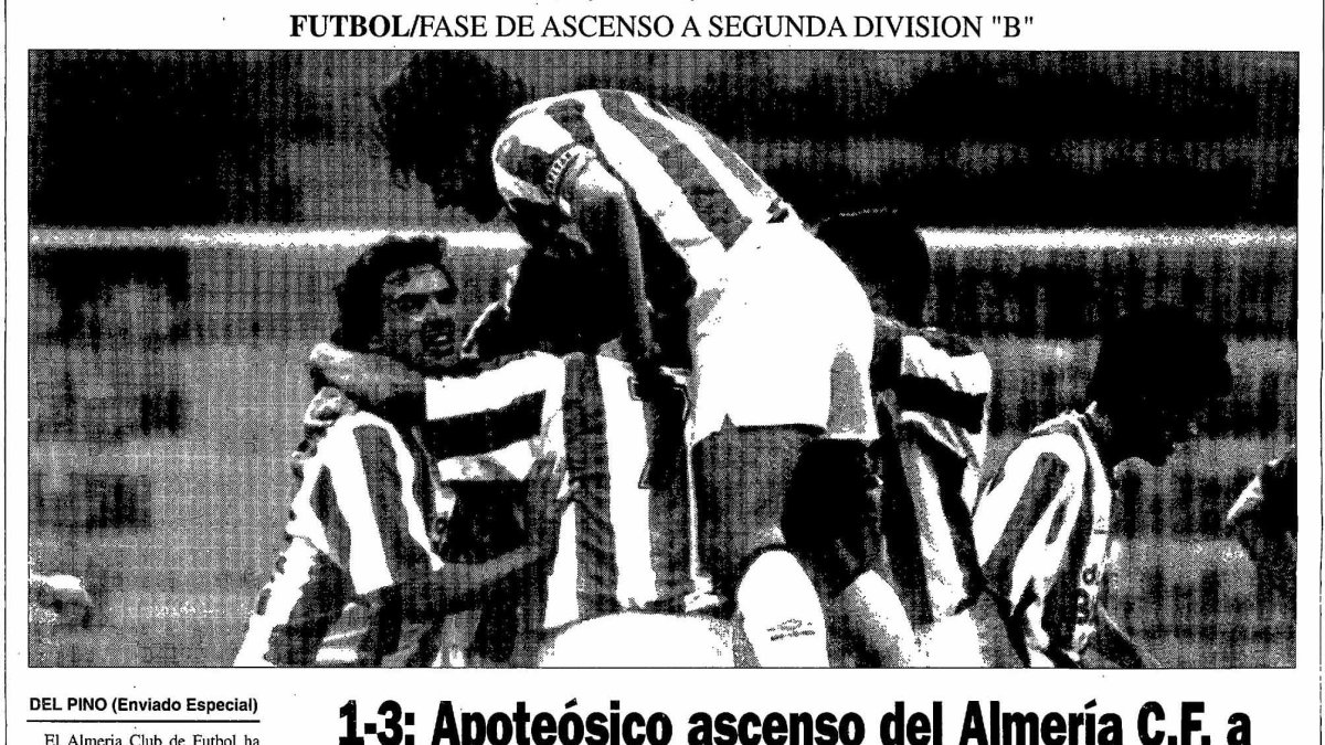 Pra entonces había nacido un nuevo equipo en la ciudad: el Almería CF, capitaneado por Guillermo Blanes. En Junio de 1990 juega su primera promoción para ascender a 3ª. La cosa iba bien pero hubo ‘encerrona’ en Atarfe. Los locales dieron palos por un tubo pero los que acabaron con tres expulsados fueron los almerienses. 3-0 al final.