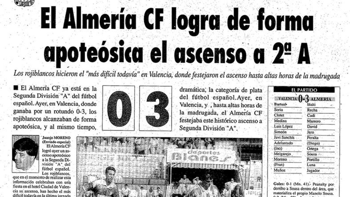 La siguiente liguilla de ascenso del Almería CF se recuerda aún entre la afición a pesar de que han tanscurrido 25 años. Fue en Junio de 1995. Rivales: Ferrol, Mestalla y Beasaín. Los irregulares resultados propiciaron que en la última jornada se jugasen el subir a 2ª Ferrol y Almería. A los gallegos les bastaba ganar en ‘La Malata’ al Beasaín que había perdido todos sus partidos; el Almería debía ganar en Valencia y esperar.