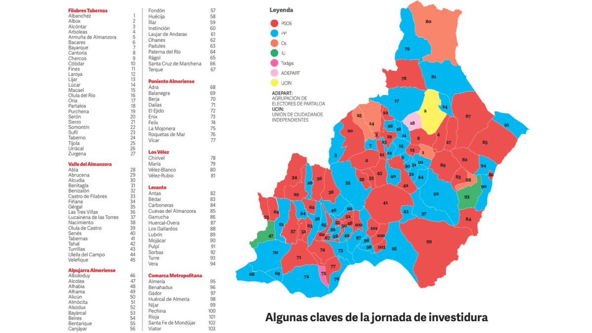 A esos municipios se suman poblaciones tan importantes como pueden ser Berja, Vélez Rubio, Vera, Olula del Río, Macael, Pulpí, Mojácar, Laujar de Andarax, Gádor y Benahadux, que tendrán regidores populares durante los próximos cuatro años.