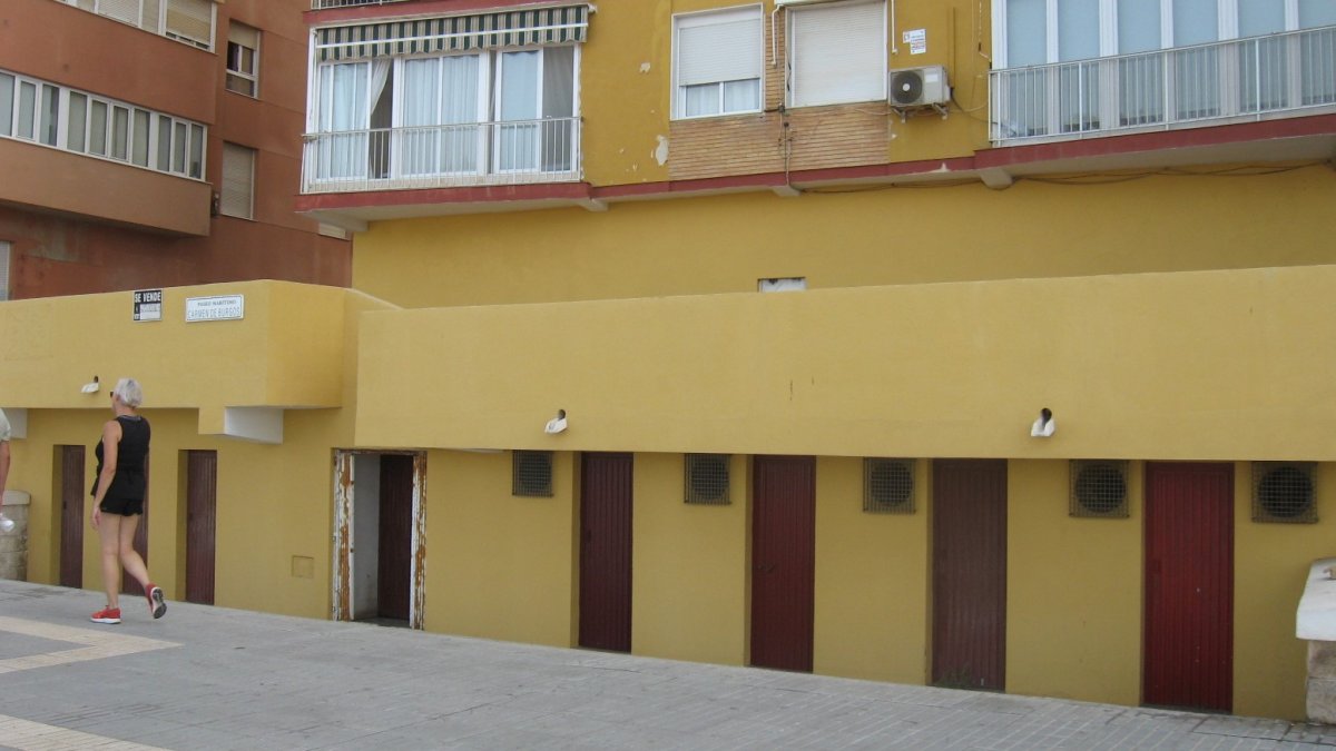 Las casetas de baño era algo corriente en las playas de Almería. Situadas en los bajos de los viejos chalets coloniales, se alquilaban a veraneantes para que dejaran allí sus enseres y no tuvieran que llevarlos diariamente. Ir a la playa en taxi o en bus era suficientemente engorroso para encima ir cargados con sombrilla, silletas y ropa. Pues se dejaban en la caseta y listo. Sólo quedan hoy las de la foto, junto a ‘Los Tritones’.