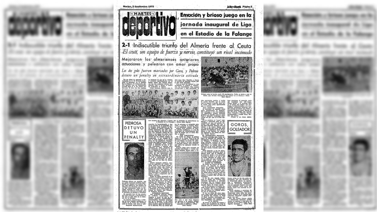 Tras una angustiosa promoción de ascenso ante el San Fernando, la AD. Almería había logrado subir a 3ª división. Aún recuerdan quienes vieron aquel partido el gol de Goros a falta de diez minutos que supuso el 1-1 y hacer bueno el 0-1 de la ida, gol de Juan Rojas.