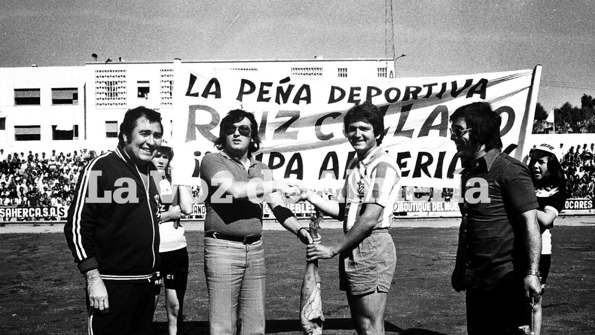 Cada vez que el equipo disputaba un encuentro en el Estadio de La Falange, la peña Ruiz Collado le regalaba un jamón al futbolista más destacado en el último partido. Los peñistas saltaban al centro del campo y le hacían entrega del premio al agraciado, detalle que era recibido con euforia por los elegidos y con sorpresa por parte de los árbitros y de los jugadores del equipo contrario, que no estaban acostumbrados a ese tipo de agasajos. Tampoco era habitual, como ocurría en nuestro estadio, que a mitad de un partido el encargado de la megafonía abriera el micrófono para anunciar que una determinado establecimiento le regalaba una caja de vino o una televisión, al jugador del Almería que consiguiera el primer gol. Otra costumbre que se perdió hace tiempo era la de aprovechar el fútbol para mostrar los productos típicos de la tierra. Recuerdo que cuando venía a jugar el Jerez el capitán le regalaba una caja de vino al Almería o aquellas muestras de aceite que traía la expedición del Real Jaén. Lo que no recuerdo es si cuando venía el Melilla traía tabaco o transistores.