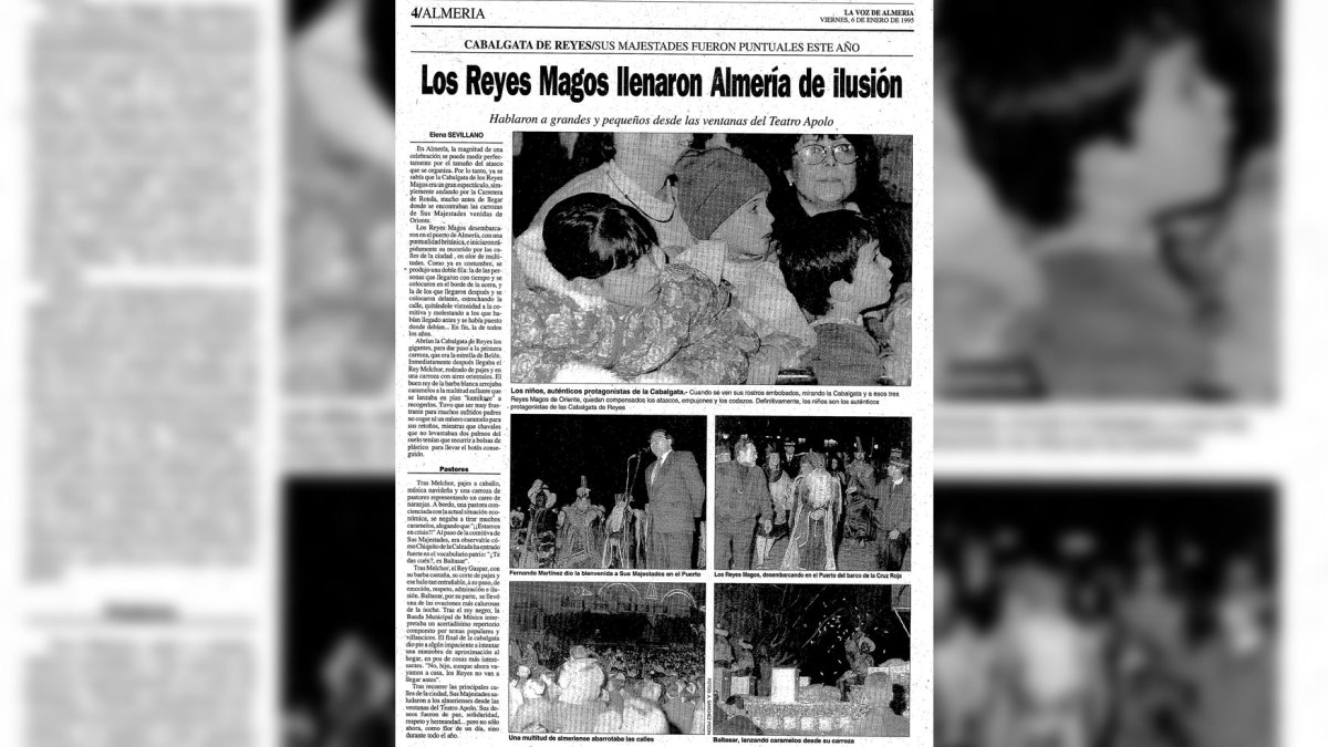 El día de la Epifanía del Señor, popularmente conocido como día de Reyes, supone el final oficial de la Navidad, aunque el refrán asegura que ‘hasta San Antón, Pascuas son’. La cabalgata de Reyes de hace 25 años tenía algunas variantes respecto a la actual. Melchor, Gaspar y Baltasar llegaron al Puerto en barco. Allí fueron recibidos por el alcalde de la ciudad, Fernando Martínez, para luego subir a los camellos y empezaron su recorrido por carretera de Ronda para desembocar en la Rambla semiurbanizada y hablar a los niños desde la ventana del Teatro Apolo. Luego, niños a la cama.