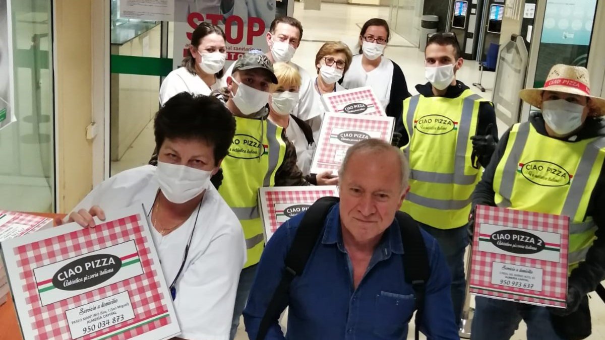 En esta ocasión, en lugar de recibir mascarillas o guantes para su protección, fue el Grupo Ciao Pizza el que llevó a sanitarios y policías más de 150 pizzas recién hechas para que las noches de lucha frente al coronavirus pasen sin hambre y con la motivación que da ver cómo cualquier almeriense anónimo se vuelca en ayudar tanto como sea posible durante la pandemia.