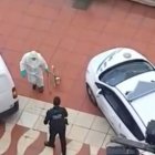 Tras esperar un rato sentado en el bordillo del Paseo Marítimo y secarse, los agentes invitaron al hombre a subirse al vehículo.