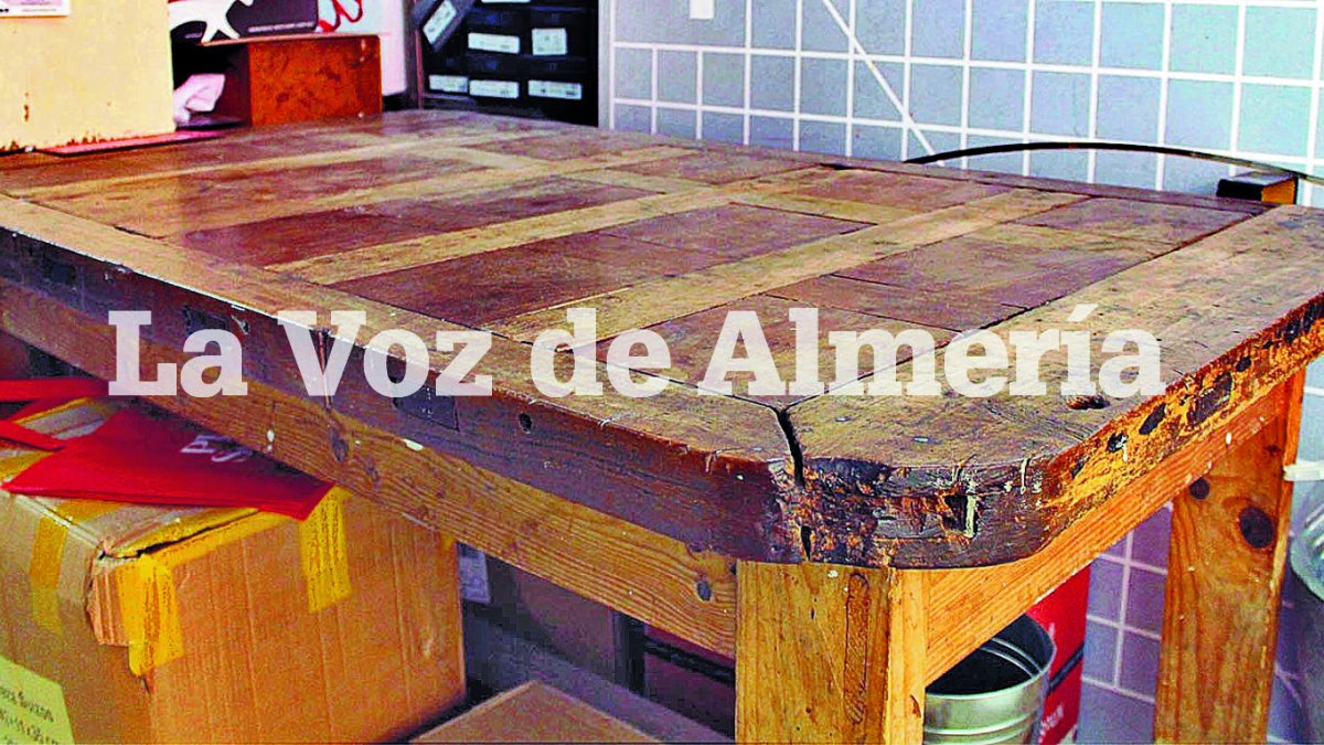 La trastienda de Calzados Plaza-Suizos esconde algunos tesoros que nos cuentan la historia de cuando este viejo local del Paseo fue el nido del Café Suizo. Un trozo del antiguo tablao donde se montaban las actuaciones artísticas sobrevive ahora convertido en una mesa de caoba.
