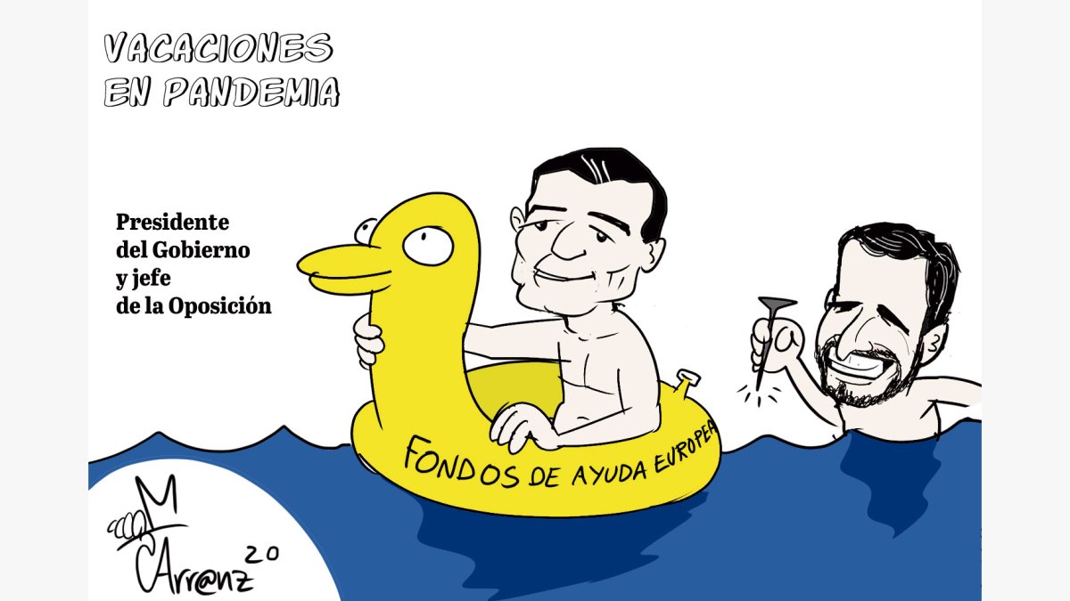 Almería La viñeta de Arr@nz del 8 de agosto de 2020 Sábado 8 de agosto de 2020 Facebook Twitter Whatsapp Whatsapp Copiar enlace Publicado por Miguel Arranz Creado: 07.08.2020 | 23:18 Actualizado: 08.08.2020 | 07:00 En: Miguel Arranz Humor Más leídas Taberno llora el fallecimiento de Álex: el niño que enseñó a toda una comarca qué es la esperanza Llega la borrasca Therese y la Aemet pone en alerta naranja a Almería Un apagón masivo en el centro de Almería deja a más de 2 mil vecinos sin luz durante la madrugada La noche del gran terremoto de Málaga deja también un seísmo en Almería Investigan a agentes de la Guardia Civil por los avisos previos a la muerte del niño de Garrucha