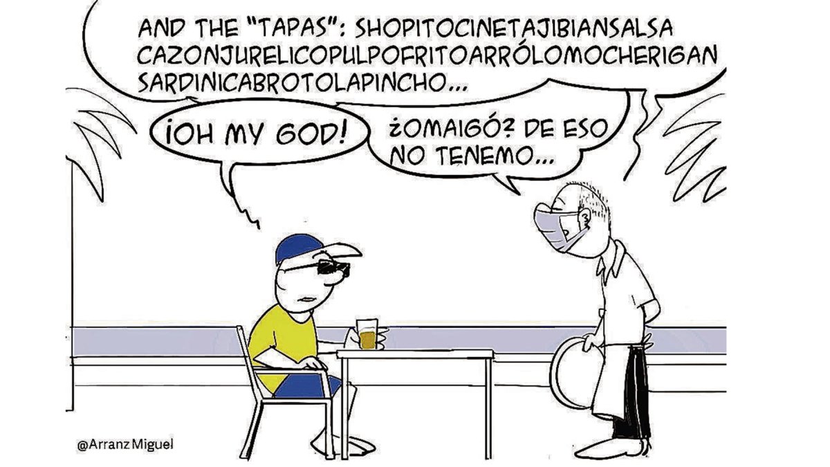 Almería La viñeta de Arr@nz del 10 de agosto de 2020 Lunes 10 de agosto de 2020 Facebook Twitter Whatsapp Whatsapp Copiar enlace Publicado por Miguel Arranz Creado: 10.08.2020 | 07:00 Actualizado: 10.08.2020 | 07:00 En: Miguel Arranz Humor Más leídas Dos muertos y cuatro heridos en un accidente de tráfico en Tabernas Daniel, el joven brasileño cuya vida se ha truncado viajando con su padre y su novia embarazada Llega a Almería el 'alquiler barato': casi 2.000 viviendas La DGT retira la homologación a 4 balizas V16 'a última hora': comprueba si es la tuya "Si me dan en el cristal, me mato": tiran piedras a los coches en la autovía del Aeropuerto de Almería