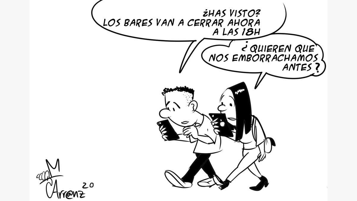 Almería La viñeta de Arr@nz del 10 de noviembre de 2020 Martes 10 de noviembre de 2020 Facebook Twitter Whatsapp Whatsapp Copiar enlace Publicado por Miguel Arranz Creado: 09.11.2020 | 22:58 Actualizado: 10.11.2020 | 07:00 En: Miguel Arranz Coronavirus Humor Bares Más leídas Antonio, entre la vida y la muerte tras una complicada operación: tenía la bala alojada en el cerebro Un joven apuñala a su madre en la cabeza y en los ojos en Vícar La tragedia de Rosa y Antonio en un cortijo de Rioja: dos tiros en la cabeza y un fugitivo Un conductor en dirección contraria provoca un accidente en El Puche y se fuga por la ventanilla Cristiano desata la tormenta y deja al Almería al descubierto