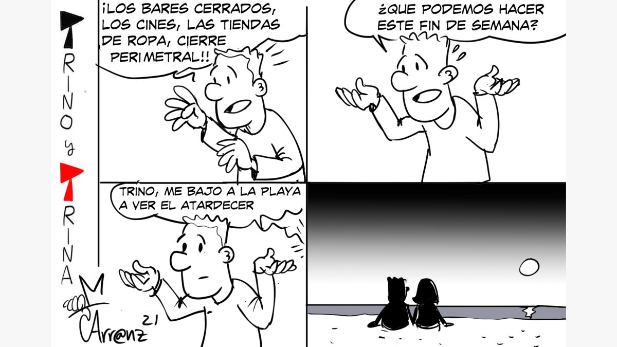 Almería La viñeta de Arr@nz del 30 de enero de 2021 Sábado 30 de enero de 2021 Facebook Twitter Whatsapp Whatsapp Copiar enlace Publicado por Miguel Arranz Creado: 29.01.2021 | 20:55 Actualizado: 30.01.2021 | 07:00 En: Miguel Arranz Humor Más leídas La Aemet activa un aviso extraordinario en Almería, en riesgo por la acumulación de nieve Ozono, el asesino silencioso que 'mata' a decenas de almerienses cada año y viene de fuera Los pueblos de Almería que podrían hacerse ricos gracias a los minerales del futuro Roquetas tendrá la primera piscina de agua marina del Mediterráneo inspirada en un yacimiento romano La Lotería Nacional vuelve a dejar miles de euros en Almería: euforia en Gádor