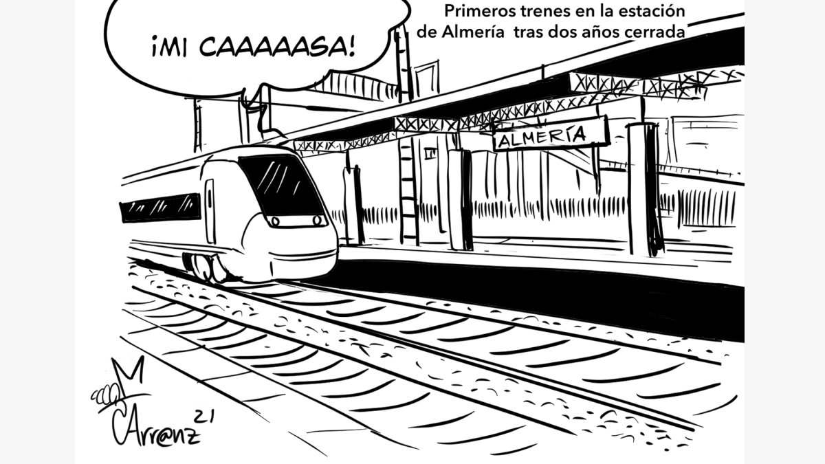 Almería La viñeta de Arr@nz del 11 de junio de 2021 Viernes 11 de junio de 2021 Facebook Twitter Whatsapp Whatsapp Copiar enlace Publicado por Miguel Arranz Creado: 10.06.2021 | 19:43 Actualizado: 11.06.2021 | 07:00 En: Humor Miguel Arranz Estación de Tren de Almería Más leídas Los avisos de la Aemet continúan: ¿habrá clase este viernes en Almería? Almería volverá a estar en alerta este viernes por viento La Aemet desvela cuándo se va 'Leonardo', pero alerta a Almería: llega una nueva borrasca con más lluvia y viento El viento destroza parte de las Urgencias pedriáticas del Materno Infantil de Torrecárdenas Almería registra este jueves rachas de viento de hasta 129 kilómetros por hora