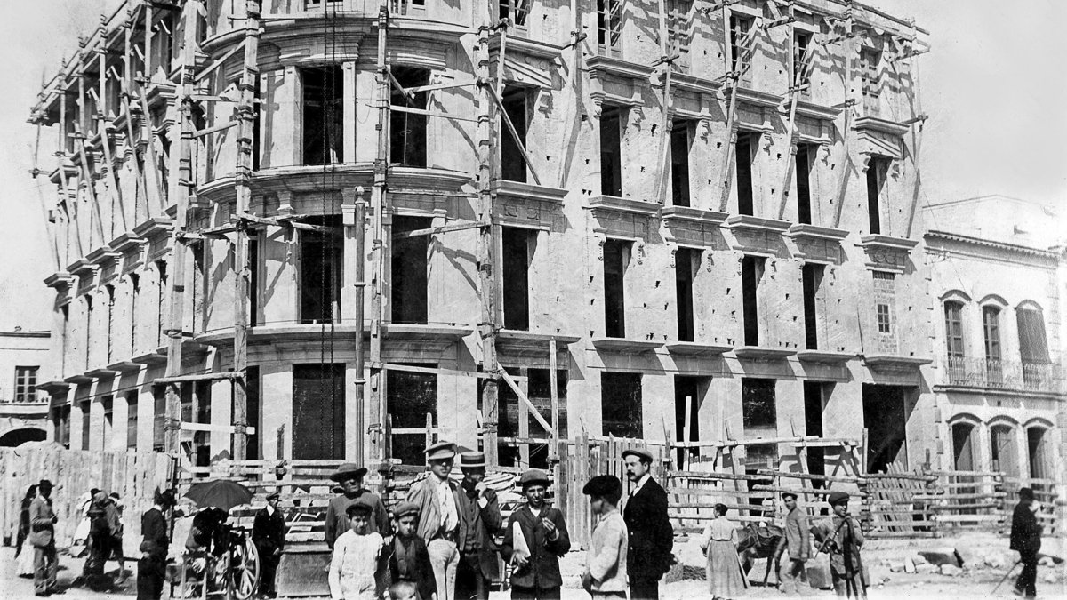 En los últimos años del siglo diecinueve, el edificio de la Posada de los Álamos ofrecía dos caras completamente distintas: la parte que daba a la calle de Granada y Plaza de San Sebastián era la más antigua y además de presentar un aspecto de abandono y deterioro, se había convertido en un obstáculo que evitaba el ensanche de ese tramo de ciudad, uno de los más transitados por ser lugar de entrada. El viejo paredón convertía en un embudo ese trozo de calle que daba acceso a la Puerta de Purchena, lo que provocaba las continuas críticas de la prensa de la época.