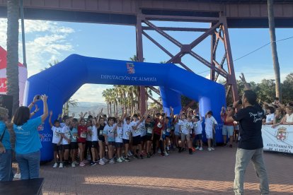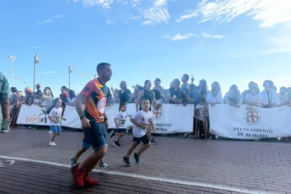 El sonido de las risas infantiles se ha mezclado esta tarde con el eco de los aplausos, el golpeteo de las zapatillas sobre el suelo y la emoción de cientos de familias que se han dado cita en el Parque de las Almadrabillas. Pequeños legionarios por un día, niños y niñas de todas las edades han llenado de color y energía el paseo marítimo de Almería, demostrando que el espíritu de superación no entiende de edades.