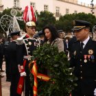 La alcaldesa de Almería y el Superintendente Jefe de la Policía Local depositan la corona funeraria en el monumento de Los Mártires de la Libertad.