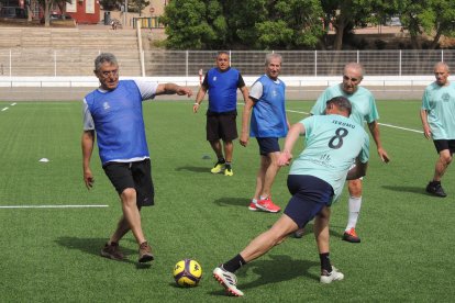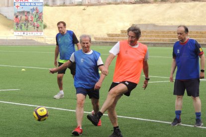Un fútbol donde no hay contacto físico, no se puede correr ni levantar la pelota del suelo. La clave está en la movilidad, siempre caminando, para estar desmarcado y encontrar los huecos para hacer gol. El primer evento de Walking Football en Almería se celebró en el Juan Rojas con un triangular entre tres equipos que contaron con diferentes personalidades de la sociedad almeriense. Mención especial para Tomasa Sánchez, que se convierte en la primera mujer en formar parte del espectáculo. “No he tocado un balón en mi vida, así que hoy se puede decir que es mi debut”, apuntó. Y es que el Fútbol a Pie está destinado a mujeres mayores de 50 y hombres por encima de los 60. El concejal de Deportes, Antonio Jesús Casimiro, no solo acudió al campo, sino que también se puso a jugar.