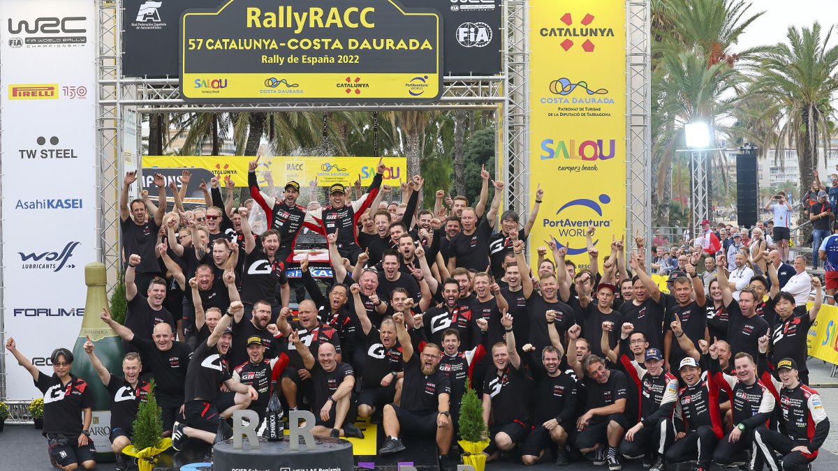 El TOYOTA GAZOO Racing World Rally Team (WRT) ha completado un triplete en el Campeonato Mundial de Rallys —World Rally Championship (WRC)— de la FIA al conseguir el título de fabricantes de 2022* con una magnífica victoria de Sébastien Ogier en el RallyRACC Catalunya – Costa Daurada - Rally de España.