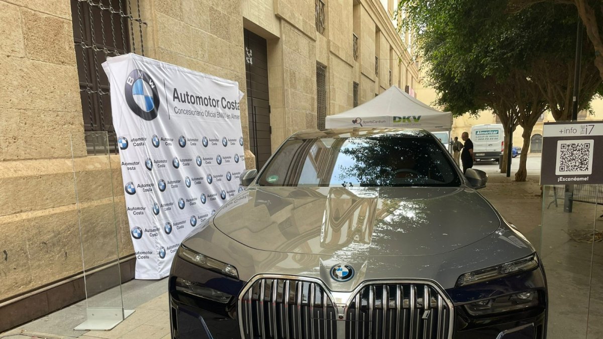El nuevo BMW i7 en versión eléctrica ha sido presentado físicamente a las puertas del Teatro Cervantes, en pleno corazón de la capital, en el marco del congreso ‘Almería Sports Destination Summit’.
