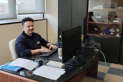 Luis Matilla en su despacho haciendo gestiones de empresa.