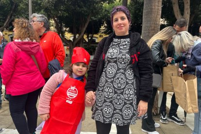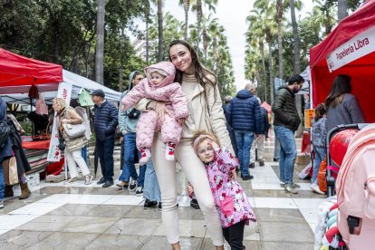 Una almeriense con dos niñas abrazadas en el Día del Tomate.
