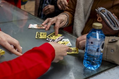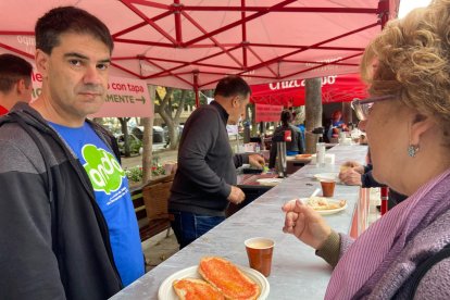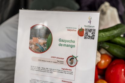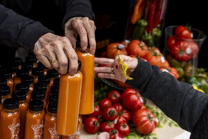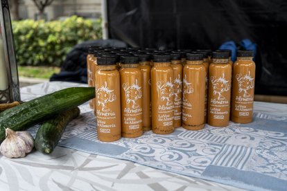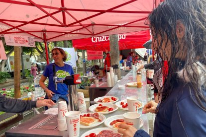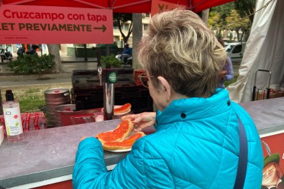 Una señora entrega su tiquet a un euro para comprar un gazpacho.