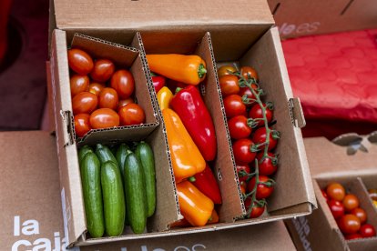 Largas colas desde primera hora de la mañana para conseguir la bolsa de tomates solidaria.