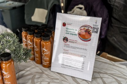 Punto de venta de tiquets para comprar bolsas de tomates, gazpachos y desayunos.