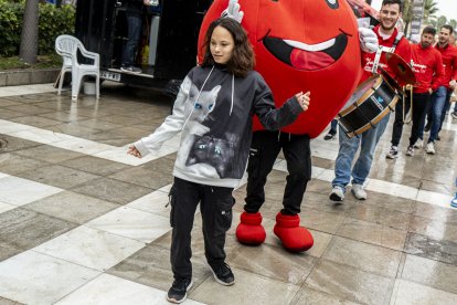 Tomatal, mascota del Día del Tomate, paseando por La Rambla.