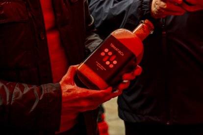 Gazpacho de frambuesa con el aceite del Castillo de Tabernas.