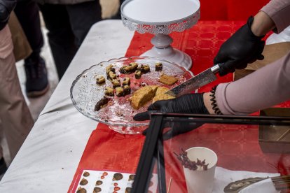 Dulcearte corta unas galletas para ponerlas como muestra.