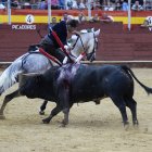 Después de algunas dudas en el único rejón de castigo ante el que abrió plaza, Hermoso de Mendoza saltó a la arena a lomos de Berlín, resolviendo esta fase con el agrado del público. El primero de la tarde se mostraba colaborador con la lidia a caballo, empleándose a veces con una punta de casta. Con Januca, creció el interés de la actuación del jinete navarro, una montura e admirable elasticidad en sus evoluciones. Siempre pendiente de los tendidos, solicitó el aplauso del respetable, convencido de la excelencia de su toreo. Después montó a Bacano, un tordo en fase blanca que le valió para lucirse en las banderillas cortas así como para ejecutar la suerte suprema, que resolvió de manera eficaz con rejón trasero.