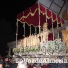 La Marcha Real, que interpretó la Banda de Cornetas y Tambores El Carmen, de Almería, anunciaban a los asistentes, que llenaban las puertas del templo, que Nuestro Padre Jesús de La Paz se hacía presente en las calles del barrio de Piedras Redondas.