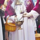 El paso de palio se advierte a lo lejos, cimbreado por el viento, convertido en una especie de nave que avanza meciendo sus varales, mientras se arremolinan los más atrevidos a palpar los respiraderos plateados. Nadie quiere quedarse atrás en el cortejo de esta noche de viento y emociones. Nadie quiere perder su sitio para ver el desfile de rostros ocultos por la seda negra, el tránsito de incondicionales que sigue la estela del manto de filigrana dorada.