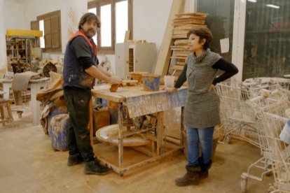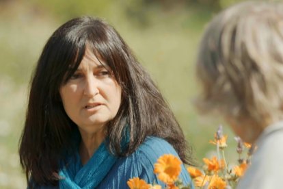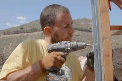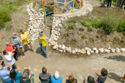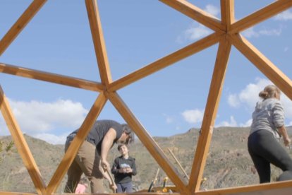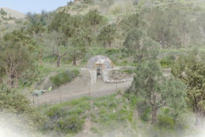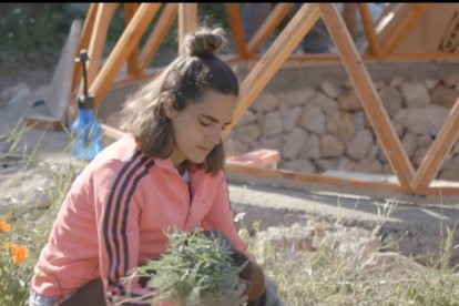 Momento en el que Zaida Ruiz ve el vivero geodésico que construyeron para su Proyecto Bosque en Almócita.