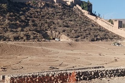 Vista aérea de toda la zona de obra desde la Alcazaba