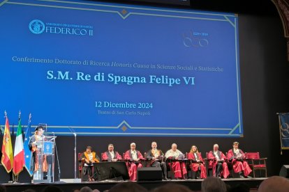 El Rey de España Felipe VI ha sido investido este pasado jueves doctor honoris causa en Ciencias Sociales y Estadística por la Universidad Federico II en el Teatro San Carlos de Nápoles.