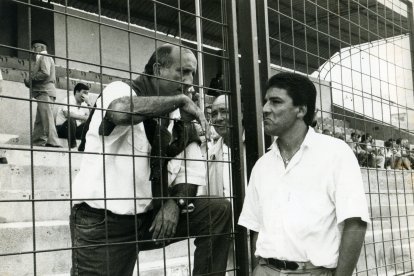 Rubén Valdez hablando con uno de los entrenadores míticos.