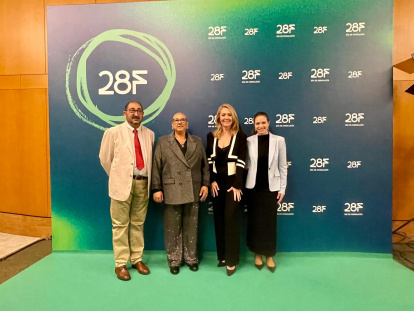 Las dos almerienses que reciben la medalla de Andalucía, Anastasiya Dymitriv y María del Mar García Beltrán, Salvador Ayala y Pepi Torres.