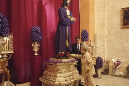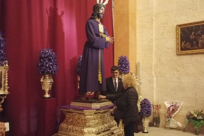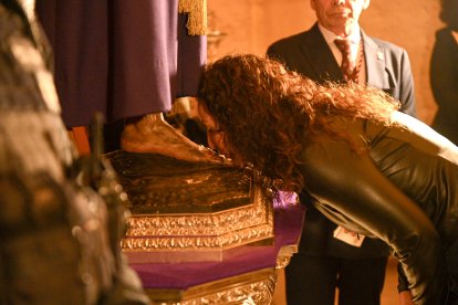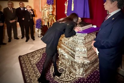 La alcaldesa, besando la imagen del Cautivo de Medinaceli.