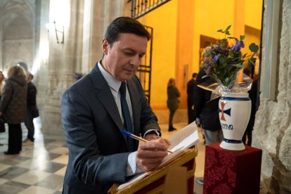 Javier Aureliano García firma el libro de visitas del Prendimiento.