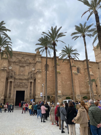 Desde las 7.30 horas de la mañana y hasta pasadas las 21 horas de este viernes, 7 de marzo de 2025, miles de almerienses y visitantes han cruzado la puerta de la Catedral de Almería. Al otro lado esperaba el acto más tradicional de la Cuaresma almeriense: el besapiés del Cautivo de Medinaceli, que ha vuelto a generar largas colas que serpenteaban por la tarde a lo largo y ancho de la plaza de la Catedral.