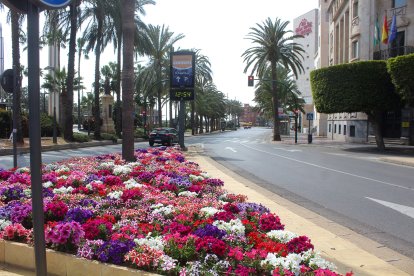 Una impactante imagen del Paseo de Almería sin presencia de peatones ni vehículos.
